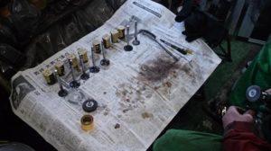 この写真は 下にエキゾーストマニホールドと、バルブとバルブスプリングとです。