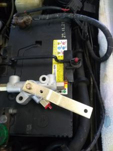 今回は、エァーサス フロントの 右側 レベリング バルブの 交換作業です。 エンジンルームの 右側の エアコン コンプレッサーの下部 当りに有る パーツからの エァー漏れの為の交換です。この パーツが レべリング バルブです。