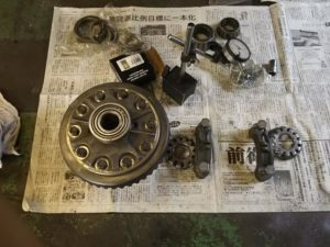 前回に続きの デフの修理です、外した 内部のギアーや ベアリングの点検して 交換作業を致します。