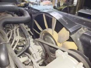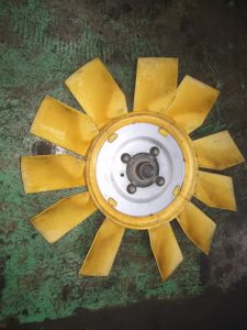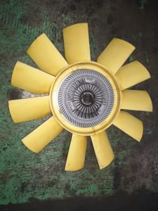 ラジエーターの後ろに付いている黄色の羽はラジエータ-ファンと呼ばれます、この駆動は ベルトにより回転されます、