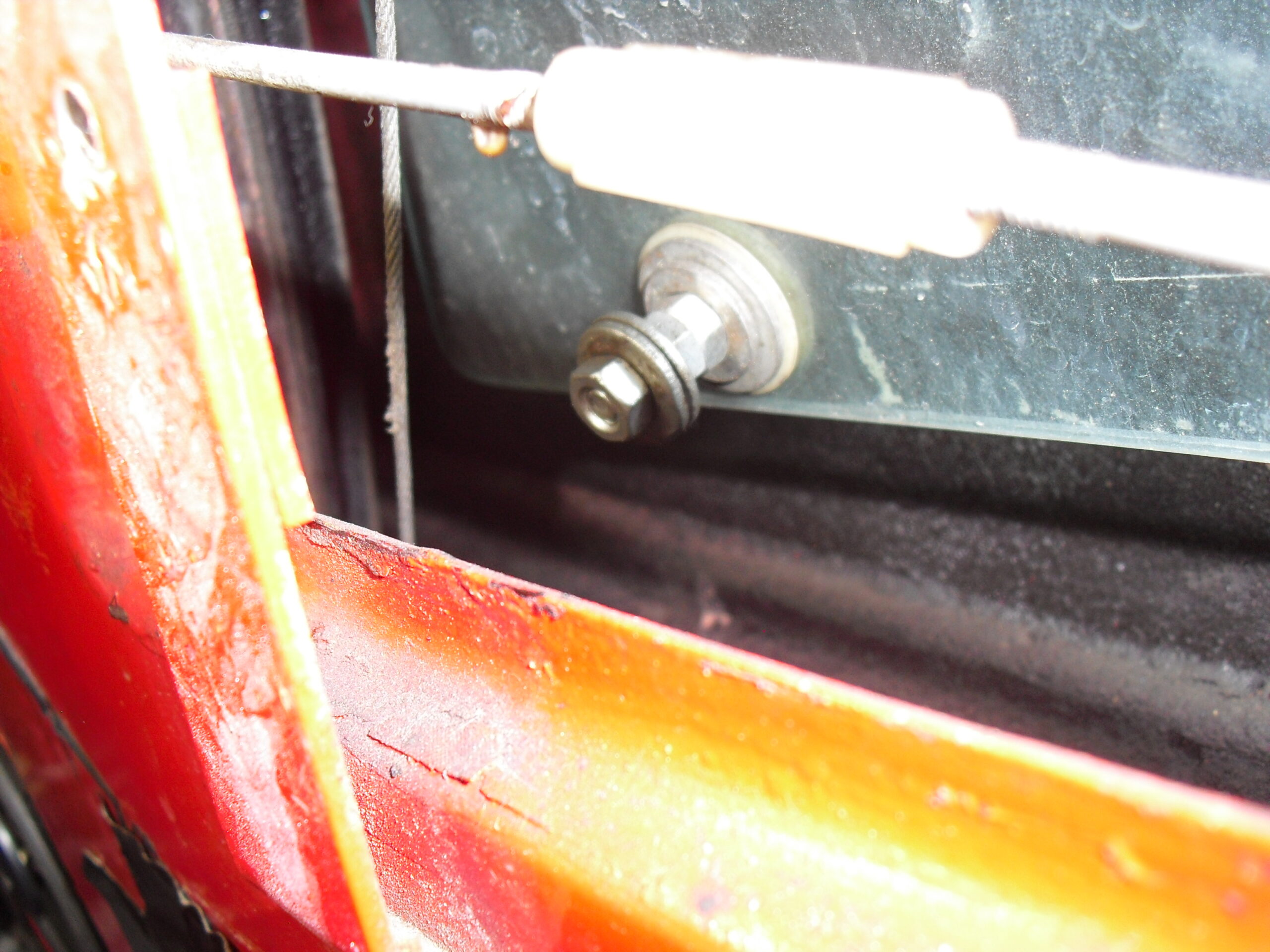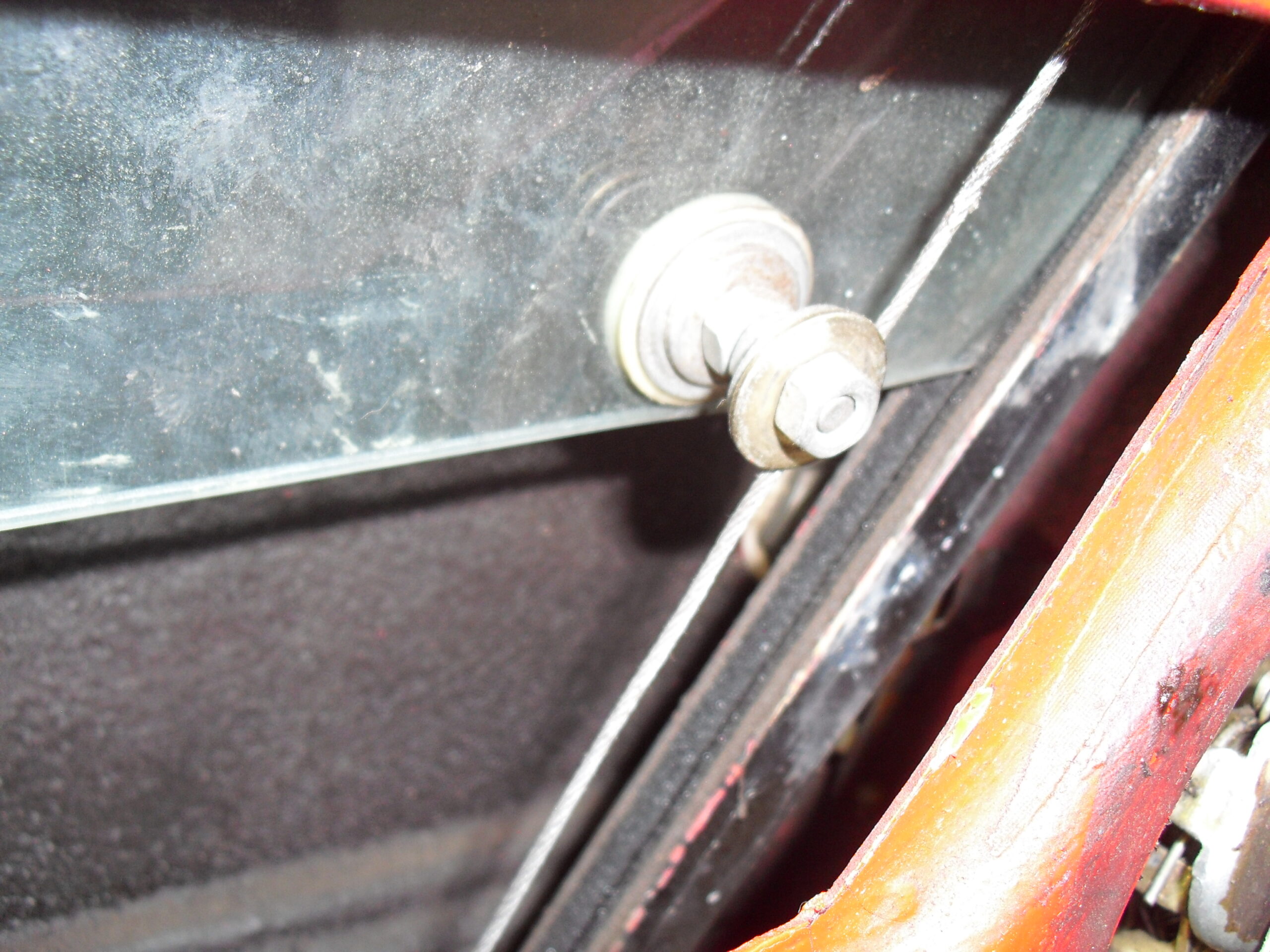写真に有るように ワイヤーによる作動で、ガラスが上下します、その部分が ゆるみ不作動に成りました。。
